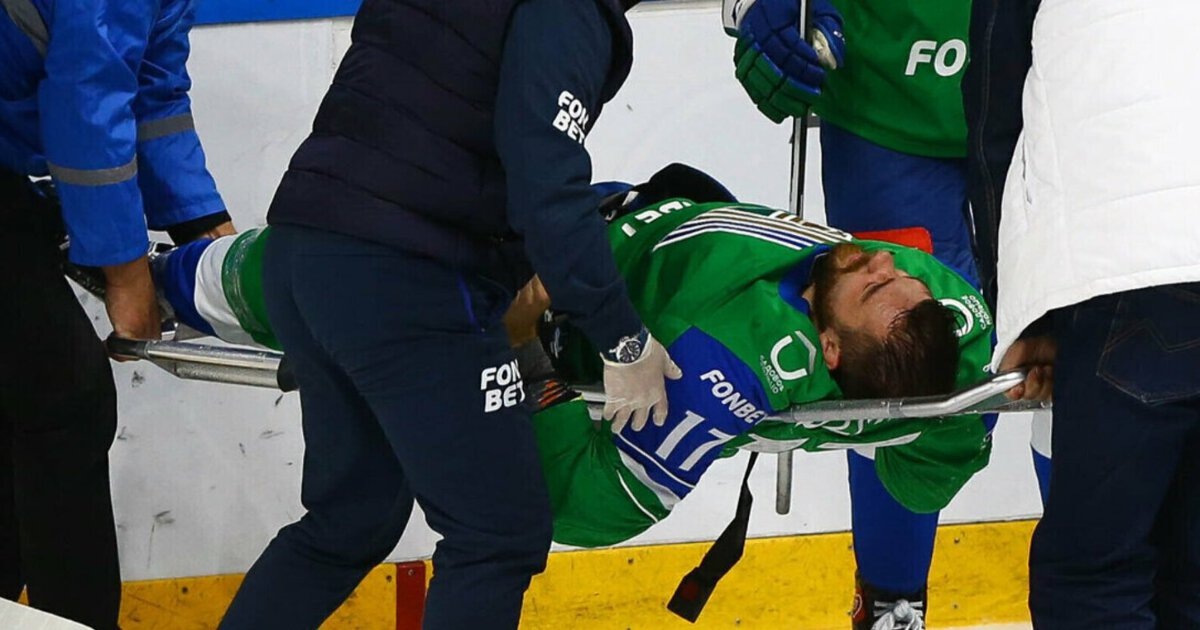 Нападающий «Салавата Юлаева» врезался головой в борт после столкновения с защитником «Авангарда» Дарреном Дитцем. Кузьмина увезли с площадки на носилках и доставили в больницу.