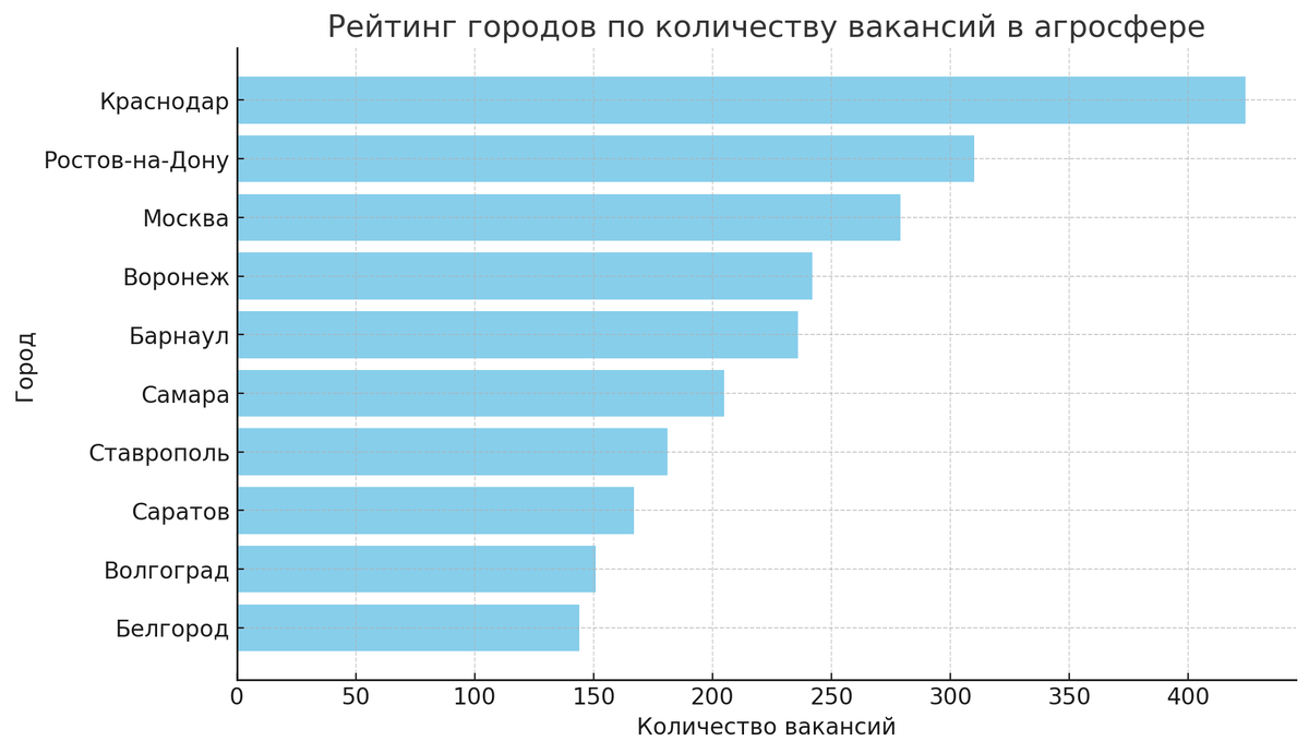Аналитический отчет о заработной плате работников сельского хозяйства в 2024 году Вопрос о заработной плате работников сельского хозяйства остается актуальным как для самих специалистов, так и для работодателей. В 2024 году рынок труда в аграрной сфере претерпевает значительные изменения, связанные с динамикой спроса и предложения, тематикой профессиональной мобильности и другими экономическими и политическими факторами. В данной статье мы проанализируем данные о зарплатах работников агросферы, основанные на информации из открытых источников, а также сравним их с показателями предыдущего года. По данным портала ГородРабот.ру, средняя зарплата работников сельского хозяйства в России в 2024 году составляет 76 452 рубля. Наиболее распространенная зарплата, отраженная в вакансиях, достигает 83 000 рублей. В текущем году наблюдается активность на рынке труда, особенно в Краснодарском крае, Ростовской области и Москве, где размещено наибольшее количество вакансий. По данным портала Агроэкспе