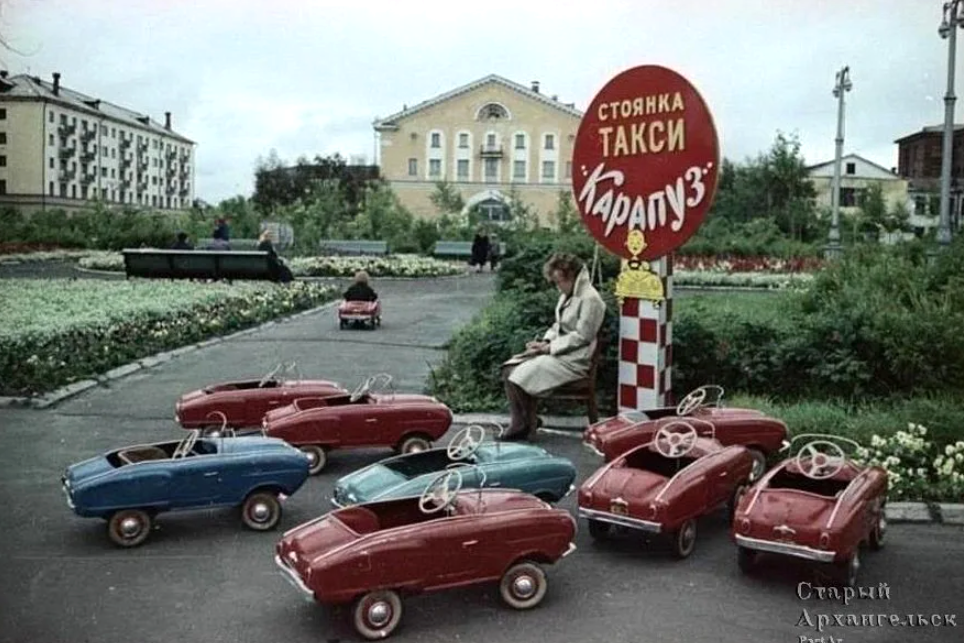 Во многих советских городах при парках культуры и отдыха имелись площадки с прокатом детского транспорта. Как правило, такие "автопарки" состояли из педальных машинок и педальных лошадок, но иногда пункты проката были оснащены и еще довольно странным "транспортным средством", которое носило официальное название "мини-карт", а дети его называли попросту "черепашками", "тазиками", ну или "ручным велосипедом". Конструкция транспорта привлекала внимание своей оригинальностью: платформа с круглой "ступенькой" - сиденьем и солидной рулевой колонкой, на которой располагались две рукоятки. Эти рукоятки и приводили в действие эту "каталку". Ребенок располагался на сиденье, руками держался за рукоятки и начинал их крутить. Цепная передача приводила в движение небольшие колесики, наполовину скрытые внутри платформы, ну а для выполнения маневров использовалась поворотная рулевая колонка. В бюллетене "Товары народного потребления" за 1983 год это устройство называлось детским мини-картом "Зайчик"