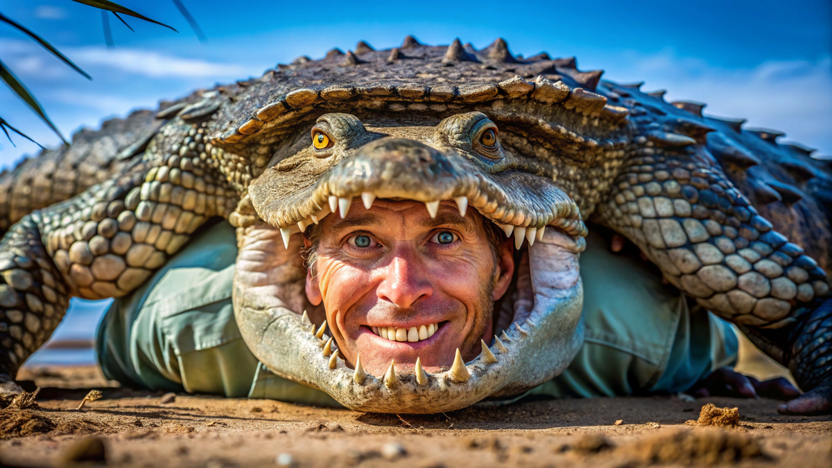 Чего не сделаешь ради эксперимента — так, наверное, подумал 47-летний Брейди Барр, когда готовился к отчаянно смелой вылазке в стан крокодилов. А риск был крайне высок. Нильский крокодил даже в одиночку крайне опасен. Что уж говорить о целом крокодильем гнезде в Танзании, где обитает до сотни матёрых особей! Напомним, что самым крупным нильским крокодилом, точно измеренным для книги рекордов Гиннеса, является как раз-таки нильский крокодил из Танзании. Это был самец весом в 1095 кг и длиной 6,45 метров. Его рекорд 1905 г. до сих пор официально не побит. И наш отважный учёный-зоолог отправился понаблюдать с близкого расстояния за потомками этого зубастого гиганта. Его целью было закрепить на шкуру одного из крокодилов датчик для дальнейшего отслеживания передвижений и температурных условий проживания исчезающего вида. Кроме того, зоолог Брейди Барр тогда находился только в начале телевизионной карьеры популяризатора науки, и как же велико было желание сделать запоминающийся репортаж для