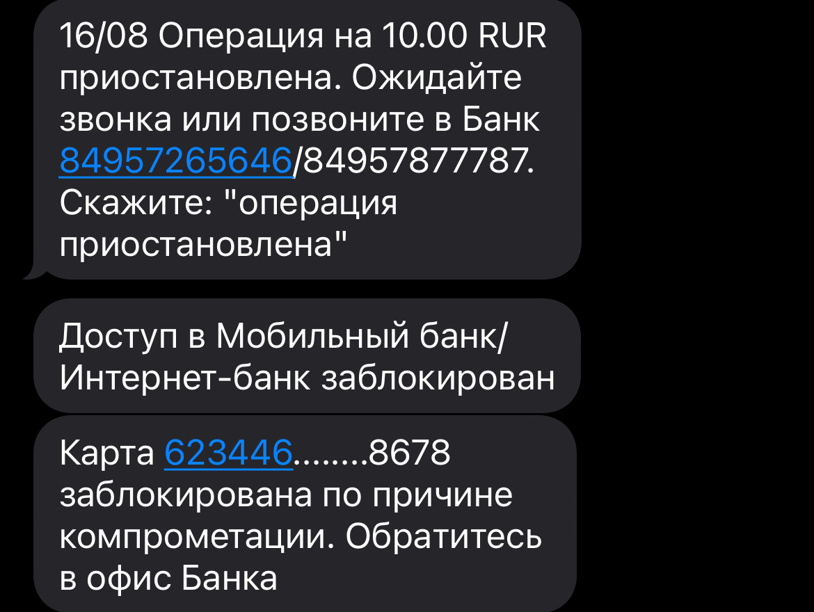 В августе мы с мужем решили отправится в Китай, для этой поездки я решила оформить карту UnionPay в Россельхозбанке. Если бы я только знала о том, чем мне это обернется, я бы никогда ее не оформляла. 14.08 я подписала договор с Россельхозбанком, а уже 16.08 я решила протестировать свою новую карту и отправила на ее счет 10 рублей, далее я решила проверить, насколько все хорошо работает и отправить деньги себе же в другой банк. С этого все началось. Операция была отклонена, мне предложили связаться с банком или ожидать звонка. Звонок я пропустила, так как не могла говорить (поступил он только спустя 20-30 МИНУТ!). Далее пришло сообщение – карта заблокирована, обратитесь в банк. Придя в банк, как я уже поняла, мне только разблокировали карту, а вот операцию они почему-то подтвердить не смогли и мне пришлось обращаться на горячую линию. Дождавшись ответа на горячей линии девушка задала мне вопрос: “А почему вы решили, что ваша карта заблокирована? Все работает – пользуйтесь”. Далее она мн