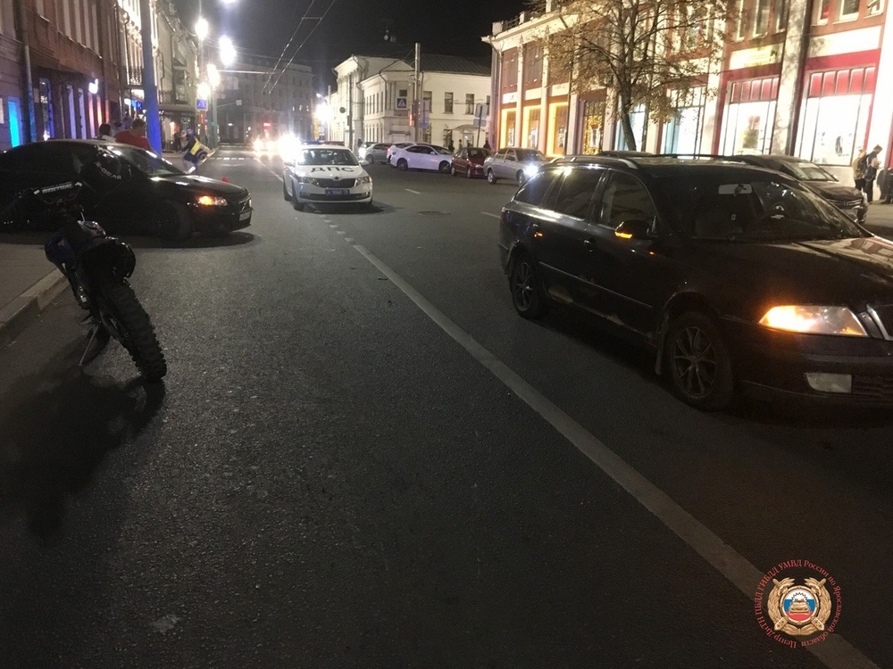 Об аварии на улице Комсомольской в самом центре Ярославля рассказали в пресс-службе центра технадзора Госавтоинспекции Ярославской области. 18 сентября две машины — «Вольво» и «Шкода», а также мотоцикл Sharmax столкнулись около 21:15 в районе дома №14 по Комсомольской. В итоге пострадал только водитель мотоцикла. Им оказался 16-летний молодой человек. Характер травм неизвестен, но, вероятно, обошлось без тяжёлых последствий. В ГАИ напомнили — за управление несовершеннолетними транспортом есть ответственность. Так, севший за руль ребёнок, по достижении 16 лет рискует стать фигурантом административного дела и получить штраф в размере от 5 до 15 тысяч рублей. Транспорт при этом изымается на спецстоянку.