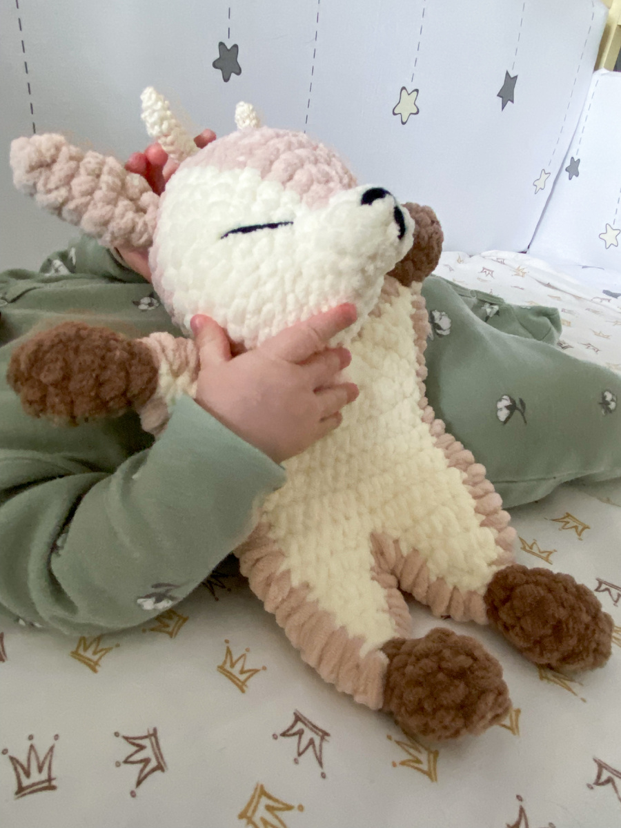 Какая у вашего карапуза первая игрушка? Я своему сыночку связала в качестве первой игрушки плюшевый комфортер Олененок. Его так и хочется обнимать и не отпускать 😍 Как и сыночка)) Такая игрушка безопасна для малышей, так как не имеет мелких деталей. Засыпая ребенок может теребить этого милого олененка за рожки или ушки. Такие действия малышам помогают быстрее уснуть. Размер игрушки - 29 см Среди моих клиентов это одна из самых популярных игрушек. Всегда радуюсь, когда получаю такие отзывы от вас 💕 Могу повторить его на заказ для вашего ребенка в любой цветовой гамме. Для этого можно написать мне в ВК