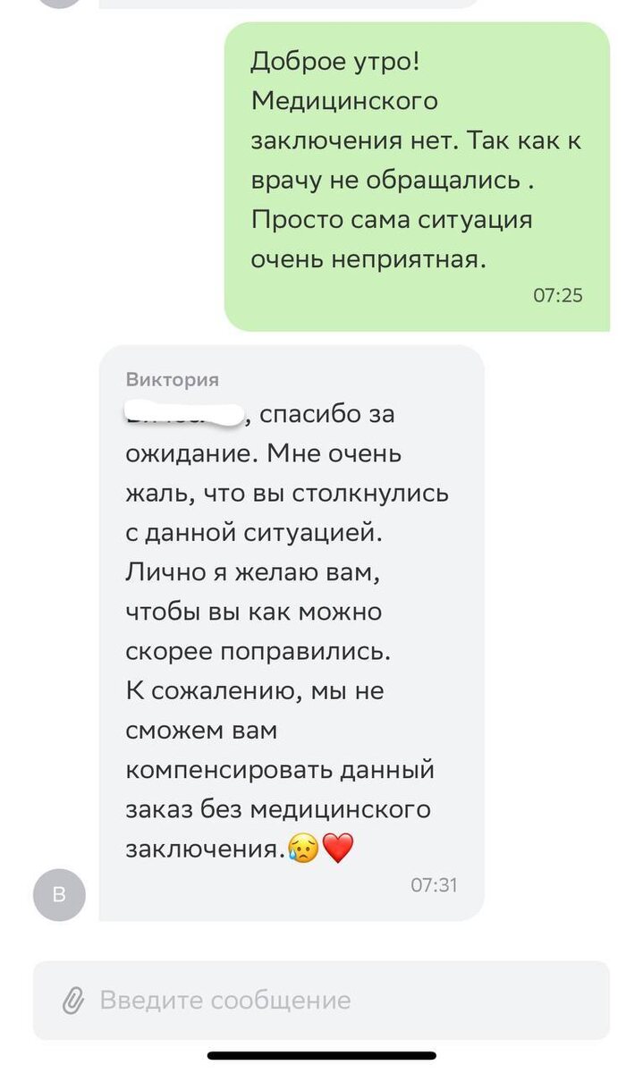 Они же доставка "Купер". Все началось в воскресенье, когда мы решили заказать еду вечерком. Заказали бургеры, картошку и наггетсы во Вкусно и точка. Через час после еды у обоих начали болеть животы, а уже начиная с 7 утра мы бегали в туалет ежечасно, то рвало, то, сами знаете что. Состояние ужасное, я более менее очухалась примерно в 4 вечера, но на этом все не закончилось, потому что после такой "феерии" еще несколько дней не было сил и болели мышцы. Естественно, обратились в поддержку, на что получили отказ: И, главное, не забыть картинку с котиком прислать. Это именно то, что нужно человеку, которого рвало с 7 утра: Всего вам доброго, клиент! Смотри, не помри. Вот тебе картинка с котом. Какое позорище. И это одна из ведущих компаний страны. Браво, Сбер! Первая страница первой главы по учебнику маркетинга гласит, что проще вернуть эту тысячу рублей клиенту, чем потом не просто потерять его навсегда, но и, в моем случае, получить публичный разгром. Никаких сбермаркетов с куперами у