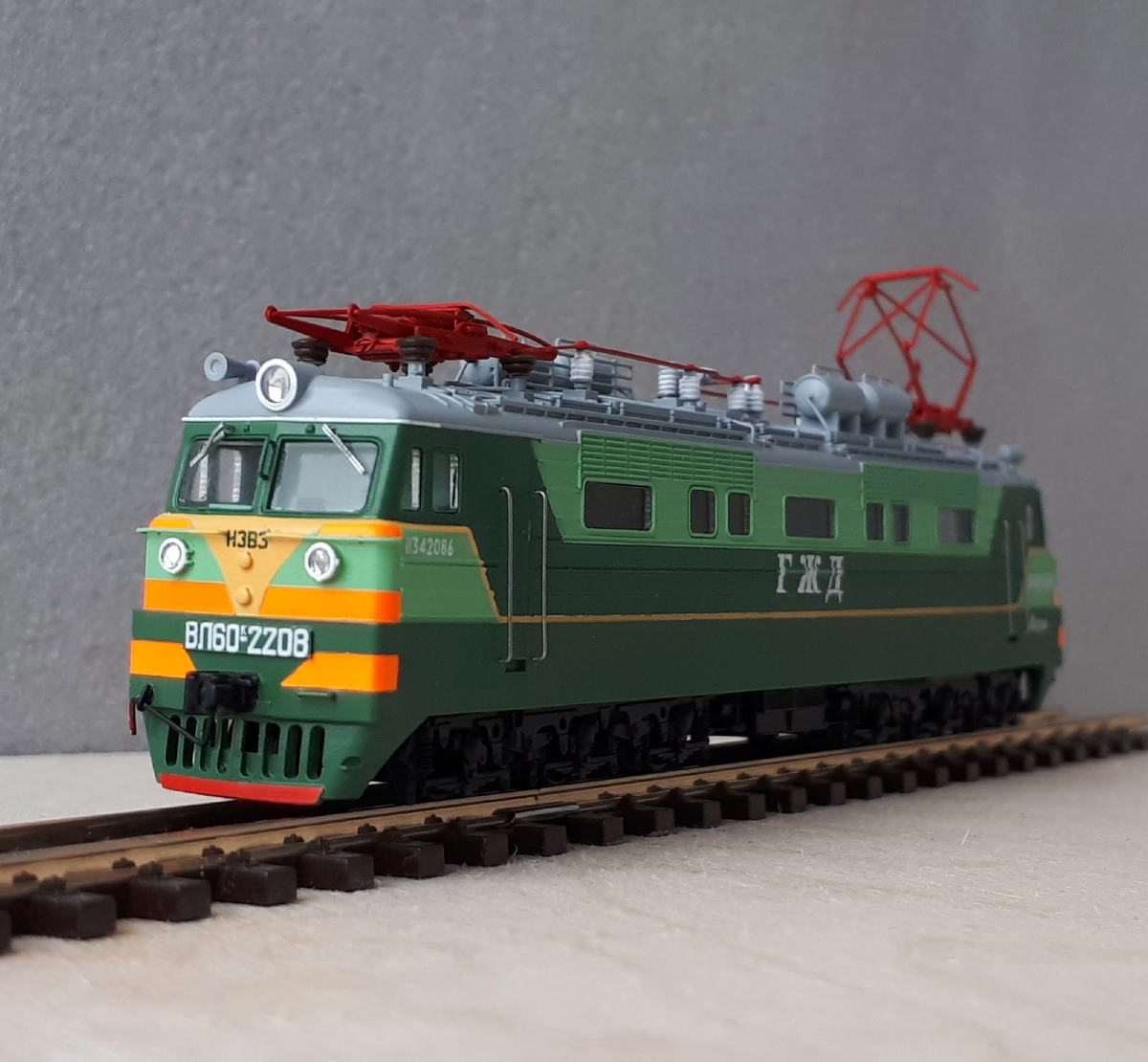 Представляю Вашему вниманию еще одну модель. изготовленную Антоном Ходаковым. Речь идет о модели электровоза ВЛ60к-2208, изготовленную в масштабе 1:160 (типоразмер N). Прототип работал в депо Муром Горьковской железой дороги. Модель стендовая. Для такого небольшого масштаба можно сказать ювелирная работа, выполнен сложный окрас, сборка и окраска безупречны. На модели использованы детали из фототравления, токоприемники Дмитрия Анютина ("СвеТТофор"). Модель собрана из малотиражного КИТа, ныне не производящегося. При желании ее можно обмоторить, используя донор от КАТО. По состоянию на вторую половину сентября модель находилась в продаже. Канал "ПАНТОГРАФ". Информация Рустем Сахапов, фото Антон Ходаков. Наша группа в ВК: ПАНТОГРАФ - присоединяемся к нашей группе поддержки Другие материалы канала: