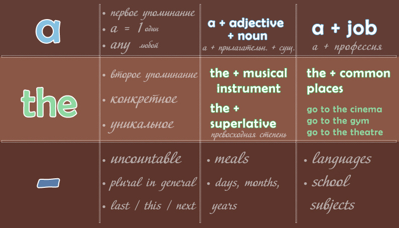 Артикли a, the и Zero article (нулевой артикль).