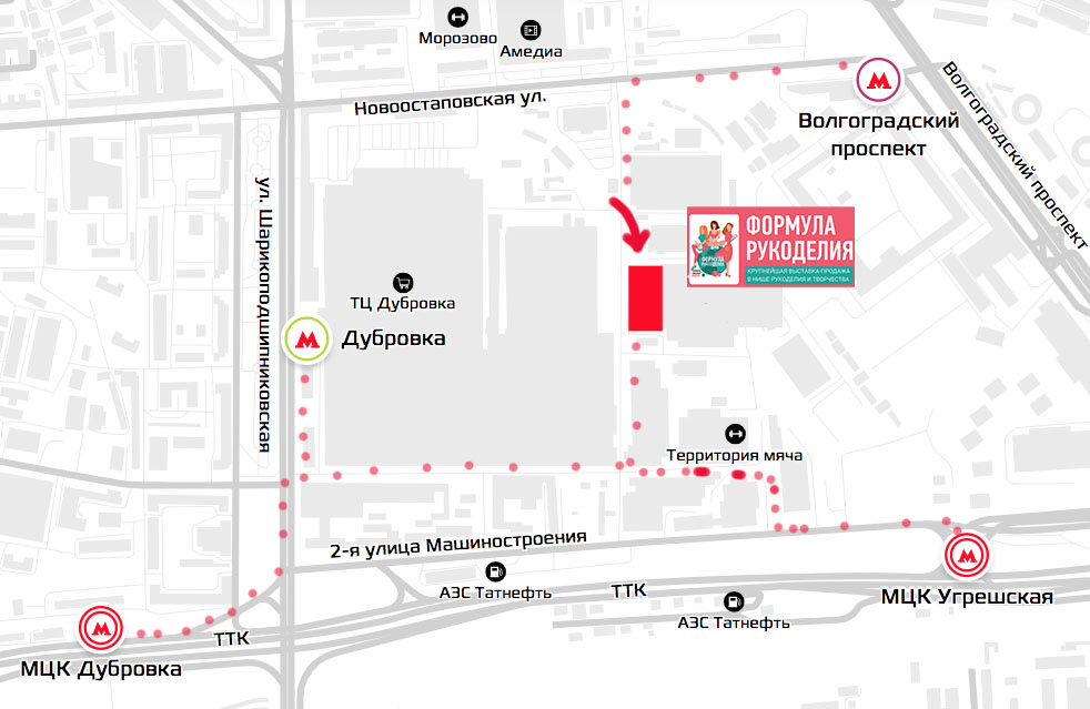 Москва, ул. Шарикоподшипниковская, 13 с33, здание MAIN STAGE Пройти можно ножками от метро Дубровка или Волгоградский проспект, а так же от МЦК Дубровка или Угрешская. Путь на картинке внизу. Большую часть первого этажа занимают стенды участников с различными изделиями ручной работы. Пройтись, посмотреть, купить подарки, удивится креативу, поразится многообразию хобби и тому, как много у нас творческих людей. А вот вышивальные стенды располагаются справа от входа (внизу на плане). Так привычно им развешивать работы, не нужно переделывать макет стенда, привычно и нам, посетителям. Заходишь и уже знаешь кто в каком углу ждет. Производители наборов: Панна, Риолис, М.П. Студия, РТО, Золотое Руно, Совиный лес, Овен, Неокрафт, Сделано с любовью, Образа в каменьях, Я вышиваю, Овечкины забавы, Бася Арт, Русская Искусница, Мир вышивки, Rozwood, Белый кролик, Лавочка Фондучка и др. особенно магниты, рамки, шкатулки, ткани для вышивания (есть и ручного окрашивания), стенды багетных мастерс