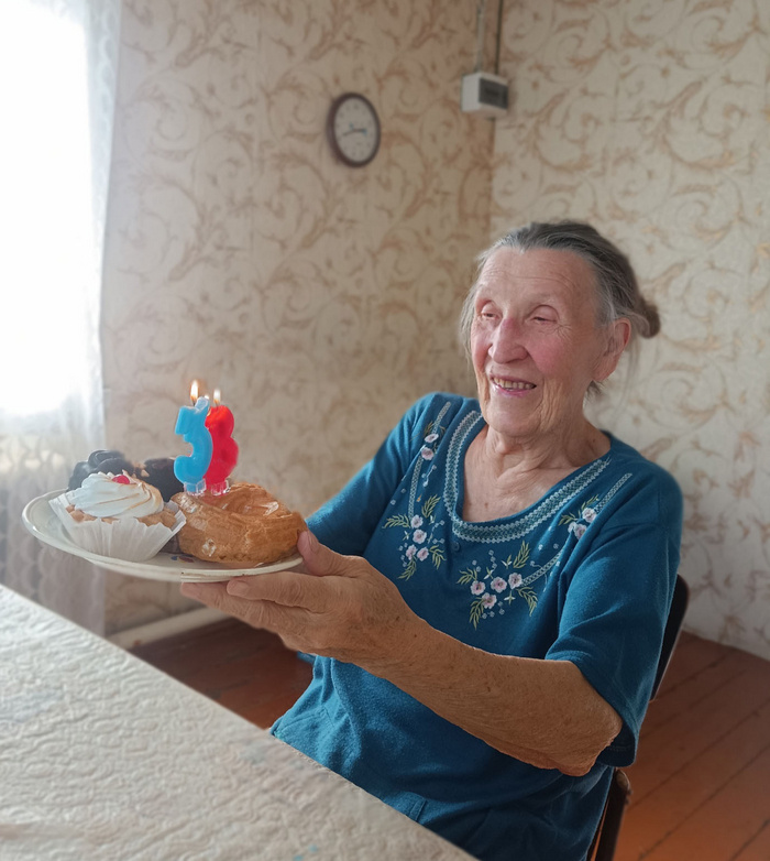 Бабуля вспомнила о приближающемся дне рождения за несколько дней, сказала мне, что настроения нет и праздновать не хочется, надо перенести на выходные или вообще на "когда-нибудь потом". Конечно, она не ожидала, что я отпрошусь с работы и ввалюсь к ней среди дня с цветами, пирожными, подарками и своей любовью) Настроение праздновать сразу же откуда-то появилась, она радовалась и смеялась, задувала свечки, с удовольствием поела и посплетничала со мной о прошлом. - Мне не 83, а 38, - сказала она, и свечки были переставлены в соответствии с этим запросом:) Бабуля хотела новую лестницу, вместо сгнившей (чтобы лазить на чердак и проверять газовый котёл). Но глянув цену в Леруа (или как он теперь называется), я поняла, что не потяну такой подарок, - все деньги уходят на лекарства, еду и быт. Принято решение купить доски и сколотить лестницу самостоятельно) А сейчас, чтобы порадовать бабушку, я купила ей несколько приятных мелочей. Распечатала фотки, принесла букет, тортик и вкусняшки, подари
