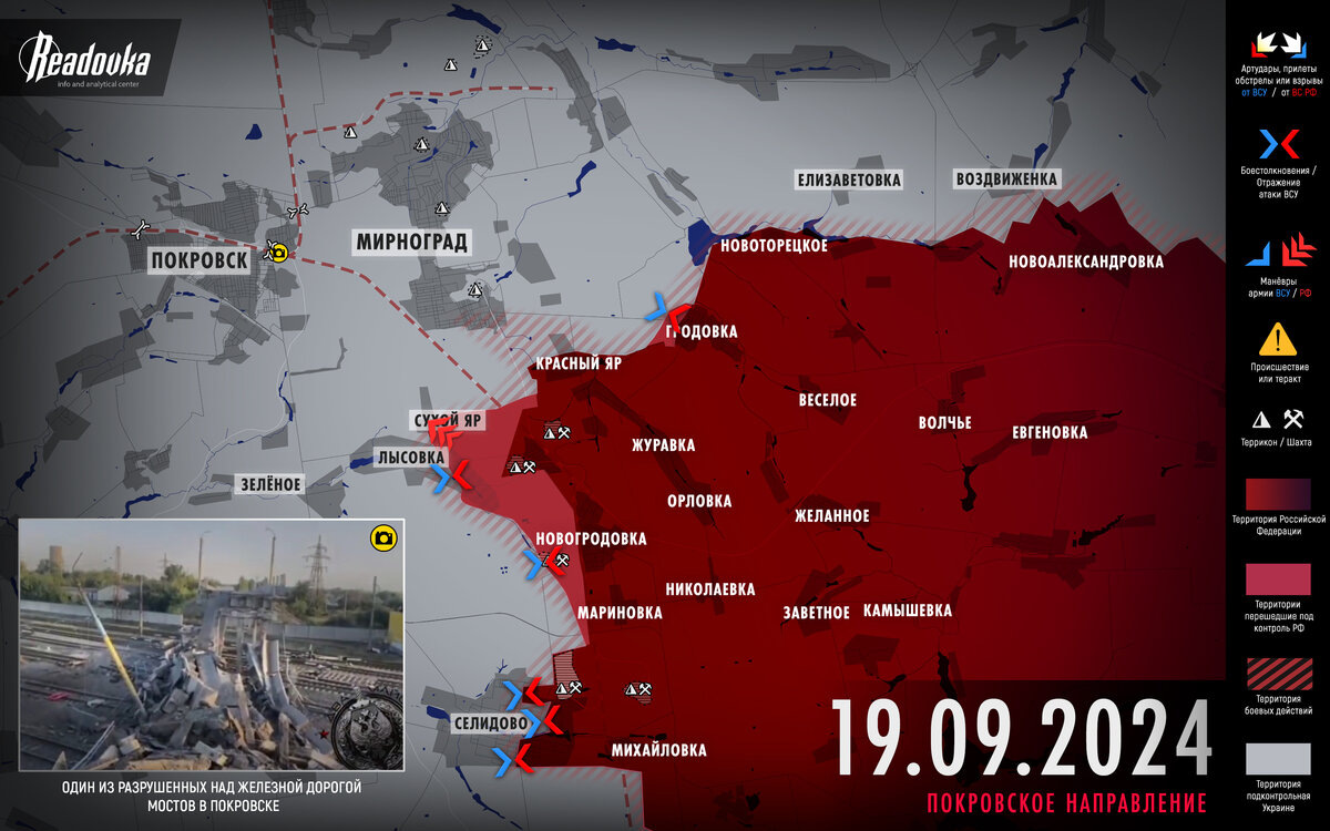 Редакция Readovka собрала важные события за 19 сентября в разрезе СВО. Русская артиллерия поставила крест на полноценном снабжении гарнизонов Покровска и Мирнограда по железной дороге..