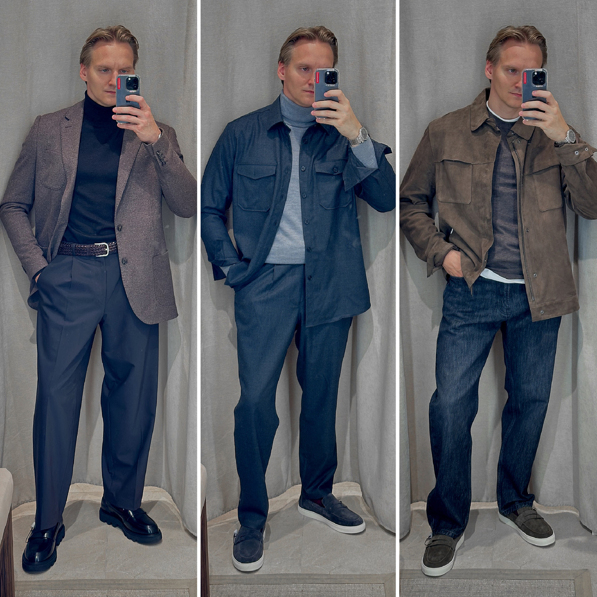 Добрый день, уважаемые! Сегодня чуть официальнее, потому что и бренд на рассмотрение у нас серьезнее. Это успевший зарекомендовать себя российский Idol. Мужской ассортимент в офлайн-магазинах, как правило, не очень «богат», поэтому сегодня на повестке у нас только три образа. Зато проговорим подробно 👌🏼 Образ 1 Очень тепло. Хотя, справедливости ради, сегодня так можно сказать про все наши образы. Готовимся к холодам, что сказать. Данное сочетание - классическое воплощение одной из самых основных тенденций: более свободный низ при верхе по фигуре. Львиная доля состава пиджака - шерсть. Бадлон - шерсть 100%. Отсюда и физическое ощущение этого образа, как по-настоящему теплого. Извращался, как мог, чтобы передать вам фактическую палитру вещей, но объектив телефона всё же безнадежно картинку искажает. Поэтому верьте на слово и смотрите фотографии в приближении, где отражены фактуры тканей, а также ориентировочные оттенки. Суть в том, что в реальности каждый использованный предмет об
