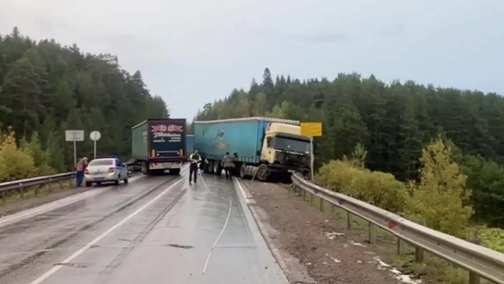 В Пермском крае произошло массовое ДТП с участием легковушки и трех грузовиков