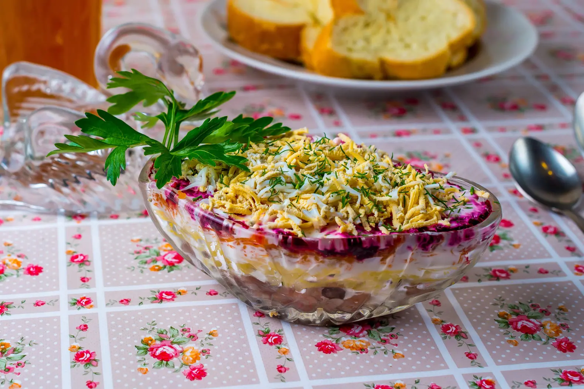 Помните ли вы каким первым должен быть слой в этом слоеном салате? Картошка, лук, а может быть селедка? Не угадаете, наверняка. Обо всем по порядку.