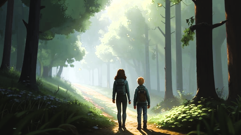 — Мама, а ты правда понимаешь, где мы? — спросил Леша, с любопытством глядя на свою маму. — Конечно, знаю — ответила она, но в глубине души у нее нарастало волнение. Они шли по лесной тропинке. И им казалось, что каждый шаг отдалял их от родных мест. Леша был восьмилетним мальчиком, с красивыми веснушками и светлыми как и у его папы волосами. Он всегда любил гулять на улице, смотреть на природу и любоваться разными таракашками и жучками. — А если мы потеряемся? — вдруг произнес он, и в его голосе появилась маленькая частичка тревоги. — Не переживай сыночек, просто немного пройдемся и вернемся домой — старалась успокоить его мама, которую звали Анной. Ее слова звучали не так уверенно, как хотелось бы. Они вышли на прогулку, что бы насладиться осенним воздухом и золотистыми опавшими листьями. И вскоре окружающий их лесок стал меняться, деревья становились все выше и дремучее. И в итоге совсем потерялись. — Мама - а - а, мне очень страшно — ухватившись за мамину руку, вскликнул Леша. — И