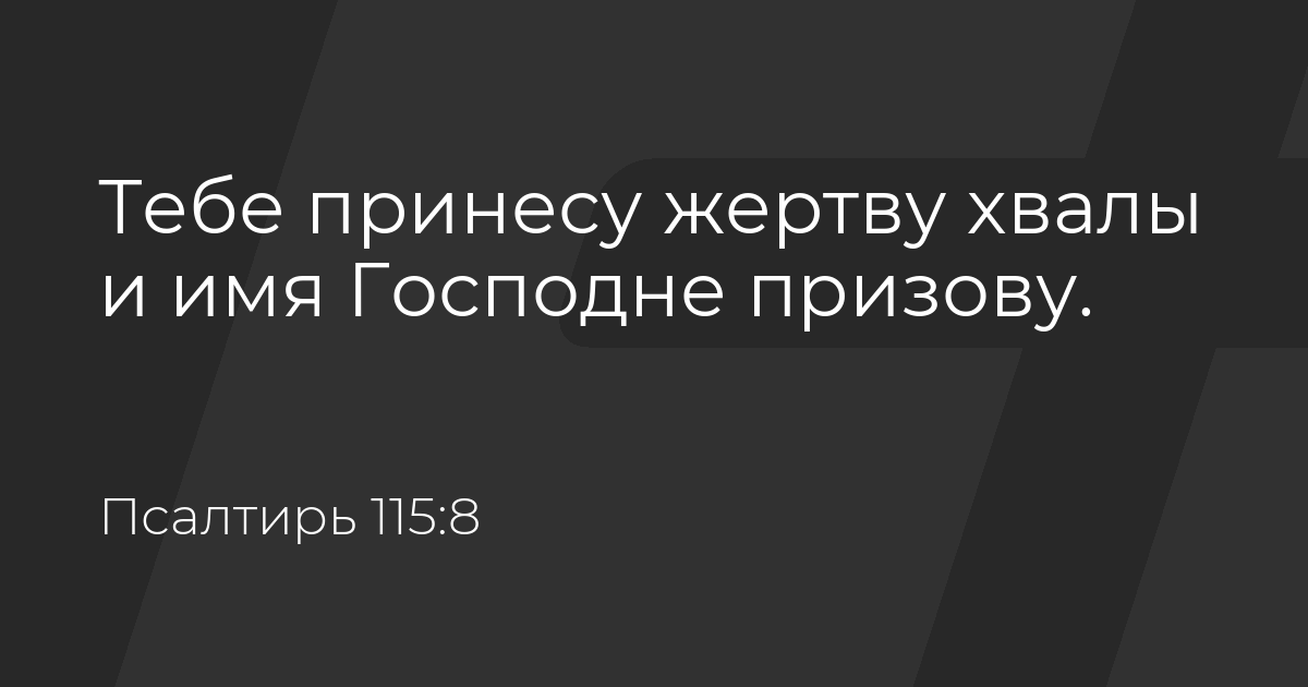 “Тебе принесу жертву хвалы и имя Господне призову. Обеты мои воздам Господу пред всем народом Его, во дворах дома Господня, посреди тебя, Иерусалим! Аллилуйя” (ст. 8-10).