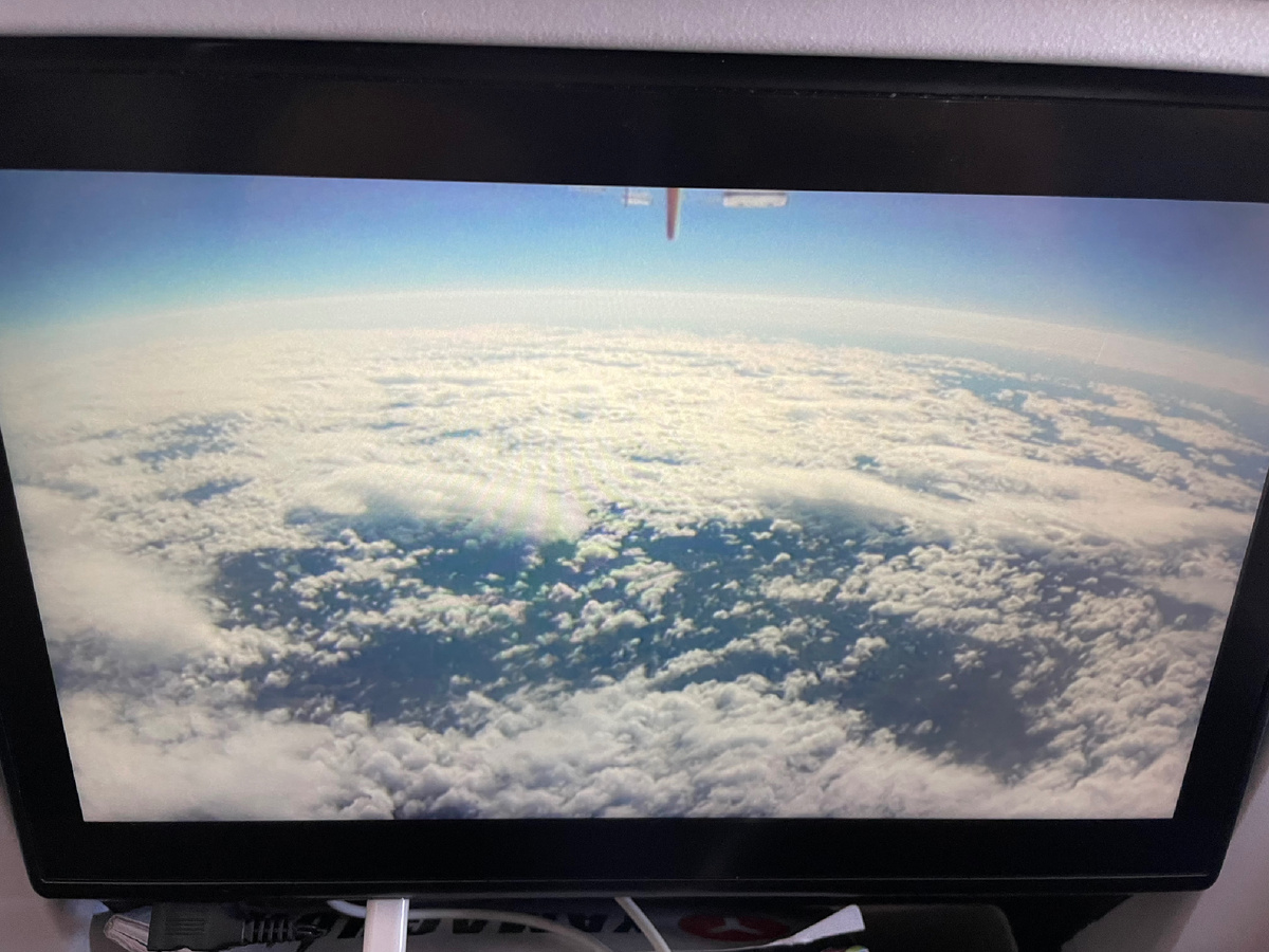 Самолет порадовал, широкие кресла, длинные ремни, даже не потребовалась просить удлинитель. Каждый раз очень стыжусь этого. В спинке кресла спереди был вмонтирован экран, к которому прилагались одноразовые наушники. Кроме фильмов и сериалов, в компьютере можно было посмотреть карту полета, и, чего я раньше никогда не видела, вид с камеры сверху и снизу от самолета. Это впечатлило, как в кабине пилота!