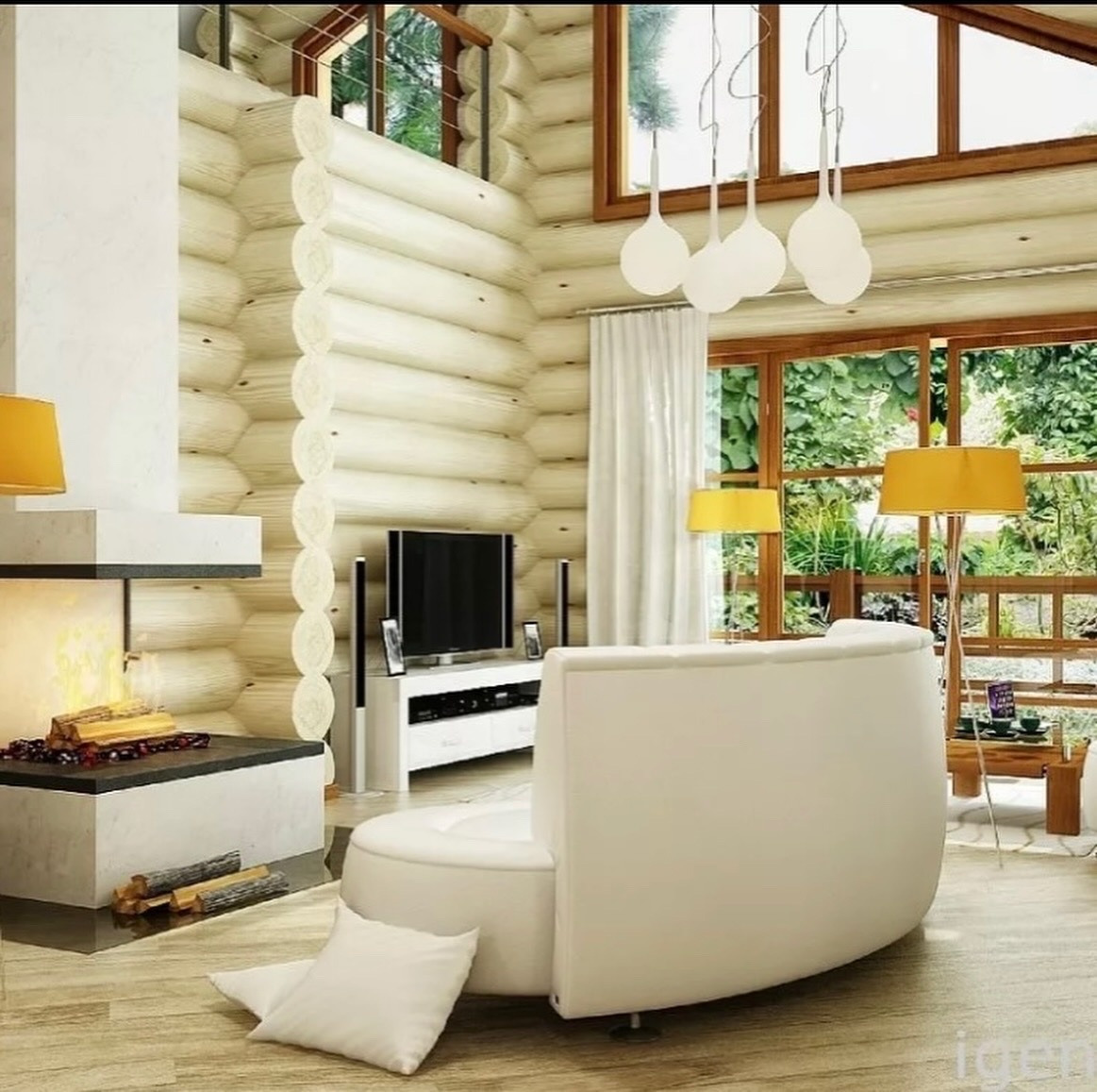 Вот как могут выглядеть интерьеры домов из бревна: 1 Традиционный русский стиль: Потолочные балки остаются открытыми, создавая уютную и теплую атмосферу. Мебель может быть выполнена из грубого дерева с резными элементами. Очаг с камином в центре гостиной – обязательный элемент. В декоре используются натуральные ткани, ковры с традиционными узорами и кованые светильники. 2 Скандинавский стиль: Интерьеры светлые, минималистичные. Деревянные стены покрыты светлой краской или выбелены, что придаёт помещению воздушность. Мебель простая и функциональная, с акцентом на натуральные материалы – дерево и текстиль. В такой комнате преобладает спокойствие и гармония. 3 Современный стиль: Здесь бревенчатые стены сочетаются с гладкими и ровными поверхностями, например, стеклянными или металлическими элементами. Большие окна обеспечивают много света. Мебель может быть лаконичной, с использованием современных материалов. Чёрно-белая цветовая палитра часто разбавляетс