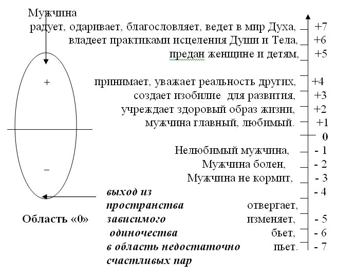 Область ниже 0 по шкале это область зависимых отношений, где и мужчина и женщина зависят друг от друга, каждый из них проживает снова и снова детские травмы, полученные в отношениях с родителями.