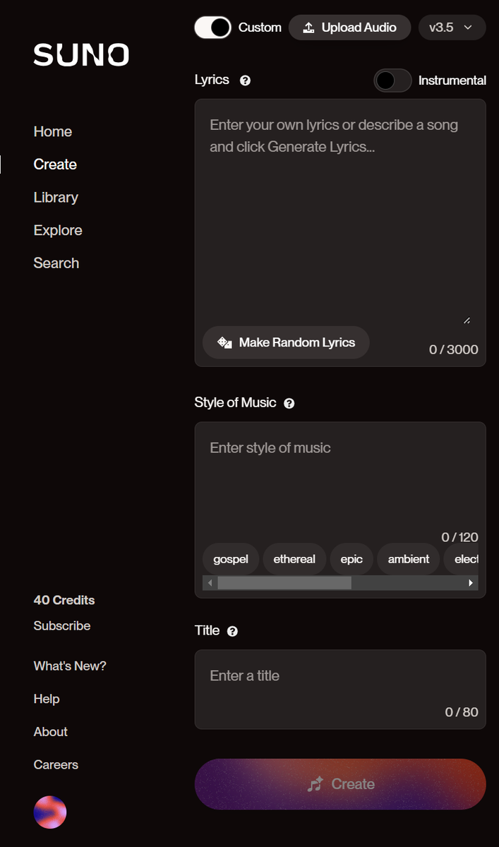 Как с помощью нейросети SUNO сгенерировать музыку ?