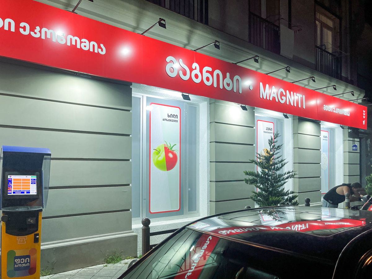Больше всего шокирует ценообразование на молоко и яйца. Но обо всем по порядку. Магниты в Грузии внешне мало чем отличаются от российских Магнитов. Такое же название, очень похожий красный логотип.