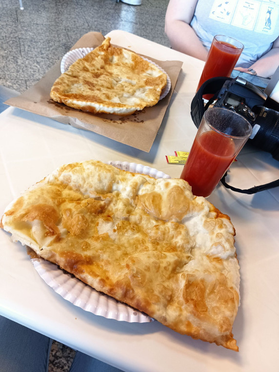 Раз в 7 лет мы делаем Это :) На самом деле, сейчас посмотрела, предыдущий раз заезжали сюда за чебуреками в 2017-м. Ужс! Но на самом деле практически ничего не изменилось :) Культовое заведение Калининградской области остается таковым Хотя они потихоньку расстраиваются и диверсифицируются, во! Пицца и пельмени принадлежат тем же хозяевам (мне кажется, что другим бы просто не дали там открыться 0_0) Персонал так же трудится «за стеклом» — удобно, можно наблюдать, как готовят твой чебурек Это чужие! Мы приехали туда в субботу вечером и неудачно попали на туристический автобус, так что очередь была эгегей! Я бродила, сначала всё фотографировала Даже посмотрела салаты и борщи. Но как-то глупо есть в таком месте борщ, КМК :) Но при желании можно вполне полноценно пообедать Зал полный! Мы сначала хотели взять и увезти с собой, а потом так истомились, что решили поесть тут Выдают пейджер по-модному На противоположной стороне шоссе тоже их заведение. Я, на самом деле, пока ждали свой заказ, ус