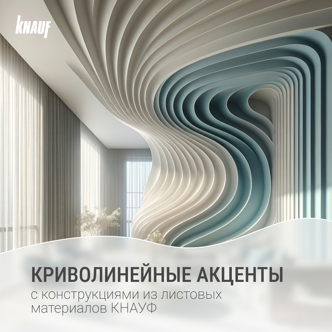 О том, какие материалы КНАУФ использовать для создания криволинейных конструкций и какие аспекты стоит учитывать в работе — читайте в карусели!