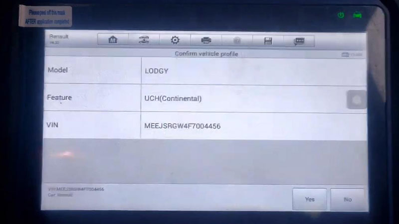 Сегодня я покажу, как добавить ключ Renault Lodgy с Autel MaxiIM IM508S через OBD. Чтобы закончить работу, вам сначала нужно будет получить код IMMO. Далее я подробно объясню процедуру. IMMO >> Accept >> Renault >> Automatic selection >> Read >> OK >> UCH(Continental) >> Yes >> Immo status scan >> Add key >> Key learning(with IMMO code) >> Start Включите аварийные огни и выключите зажигание. Примечание: - Используйте обучающий код (28 цифр) ниже и VIN (17 цифр) для расчета, чтобы получить код IMMO (39 цифр). - Получите код IMMO (39 цифр) у дилера Renault или связавшись со службой технической поддержки. - Введите код IMMO (39 цифр) и нажмите OK, чтобы продолжить. - Не отключайте устройство и не выходите из этого интерфейса до получения кода IMMO (39 цифр). * Будьте осторожны и НЕ вводите неправильный код, в противном случае вам придется получить новый код у дилера. Autel IM508S рассчитал PIN-код. У вас есть рабочий ключ или вы сгенерировали дилерский ключ? Да Вставьте ключ. Включите заж