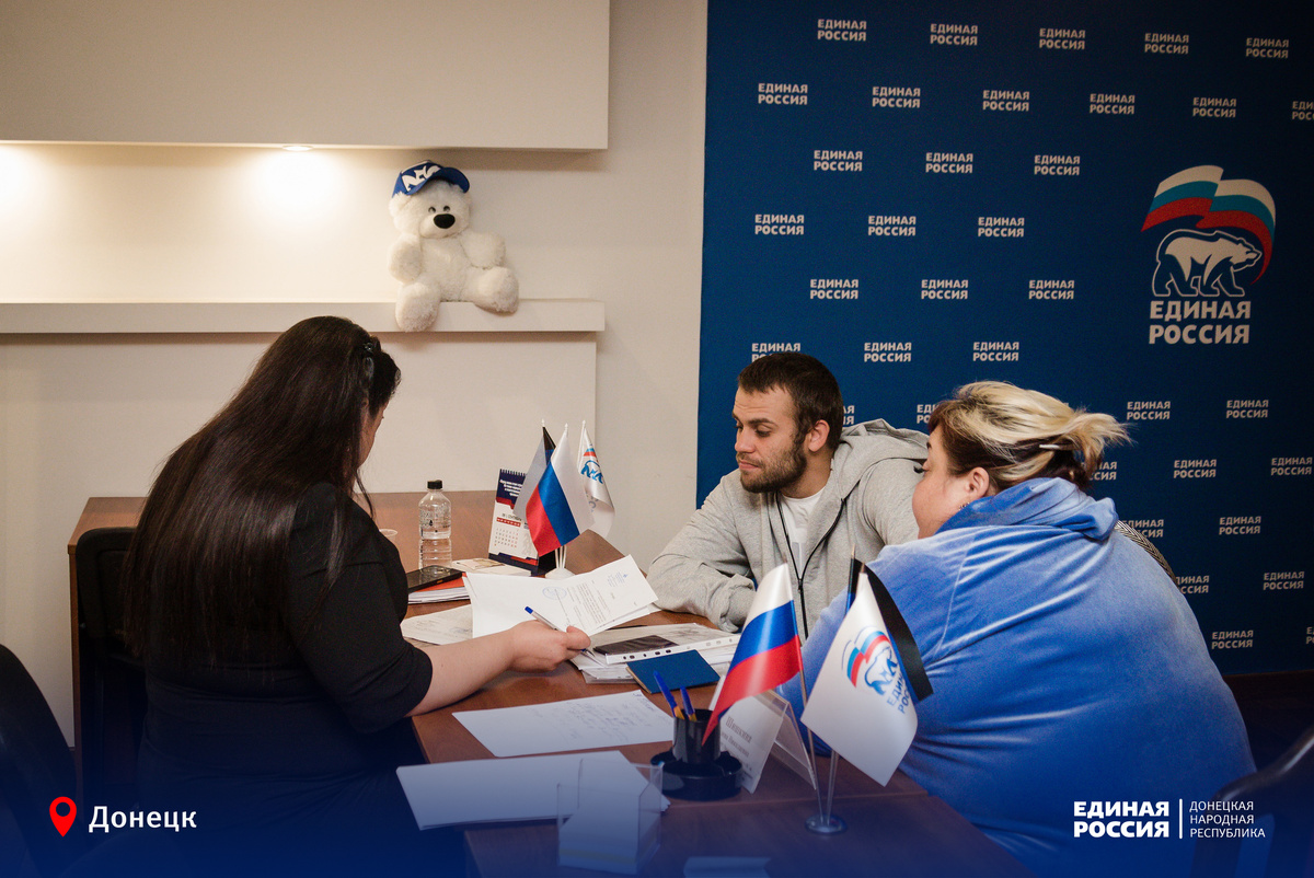 В региональной общественной приёмной Единой России прием граждан провела Елена Шишкина, депутат Народного Совета ДНР, председатель Комитета НС по конституционному законодательству, государственному строительству и местному самоуправлению. Люди обращались с различными вопросами. По поводу разрушений обращались жители села Розовка. Ветеран боевых действий пришел с другой проблемой: военкомат не признает его ранения боевой травмой. Данный вопрос взят на контроль. Также были вопросы по переоформлению недвижимости и ремонту дорог. Двое заявителей будут обеспечены гуманитарной помощью – продуктами питания, двоих – направили в реабилитационный центр для восстановления здоровья после обстрелов. Также на прием обратился военнослужащий с проблемой в получении паспорта Российской Федерации. Этот вопрос тоже взят на контроль. «На все обращения заявители получили консультации, а также будут даны письменные ответы тем, кто подал письменные обращения. Будем вместе добиваться справедливости», – подвел