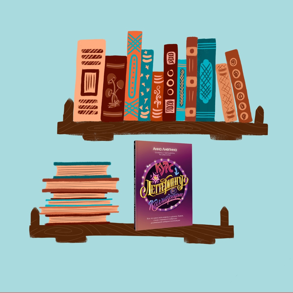 Возможно, это и хорошо, но в первый момент, я расстроилась что нет цветных иллюстраций. Но сейчас понимаю, что это позволяет рассмотреть композицию по тону, расстояние и толщину штрихов, не отвлекаясь на цвет. А так же придумать свое цветовое решение. Так что это плюс. А если хочется увидеть все в цвете, то в конце книги можно перейти по QR-коду и посмотреть. Вся книга разбита на три части:теория, практика и композиция с леттерингом и каллиграфией.