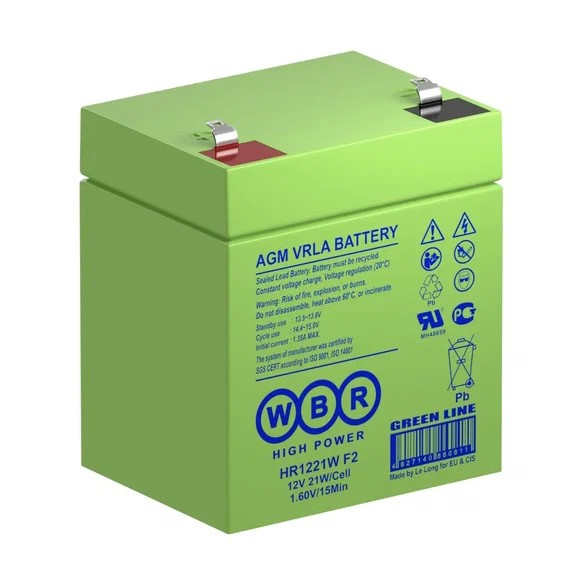 - Все аккумуляторы WBR HR работают с напряжением 12 В, что делает их универсальными для большинства промышленных приложений. Например, WBR HR1221W F2 с мощностью 21 Вт/эл отлично подходит для маломощных ИБП и систем аварийного освещения.