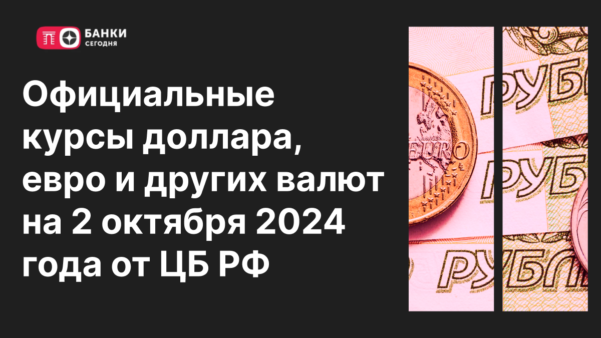 Официальные курсы доллара, евро и других валют на 2 октября 2024 года от ЦБ РФ | BanksToday