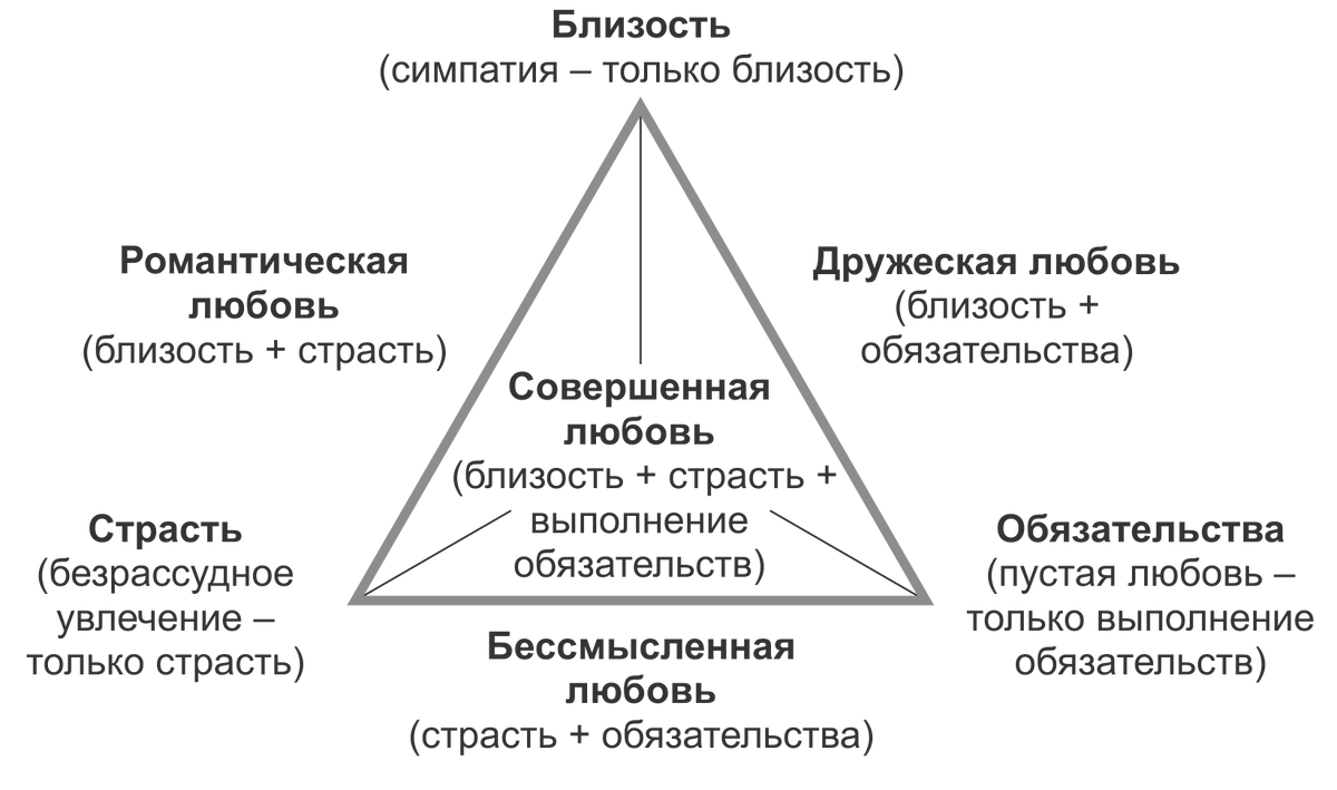 Согласно официальной психологии, Совершенная любовь — это сумма 3 составляющих: Близость + Страсть + Обязательства