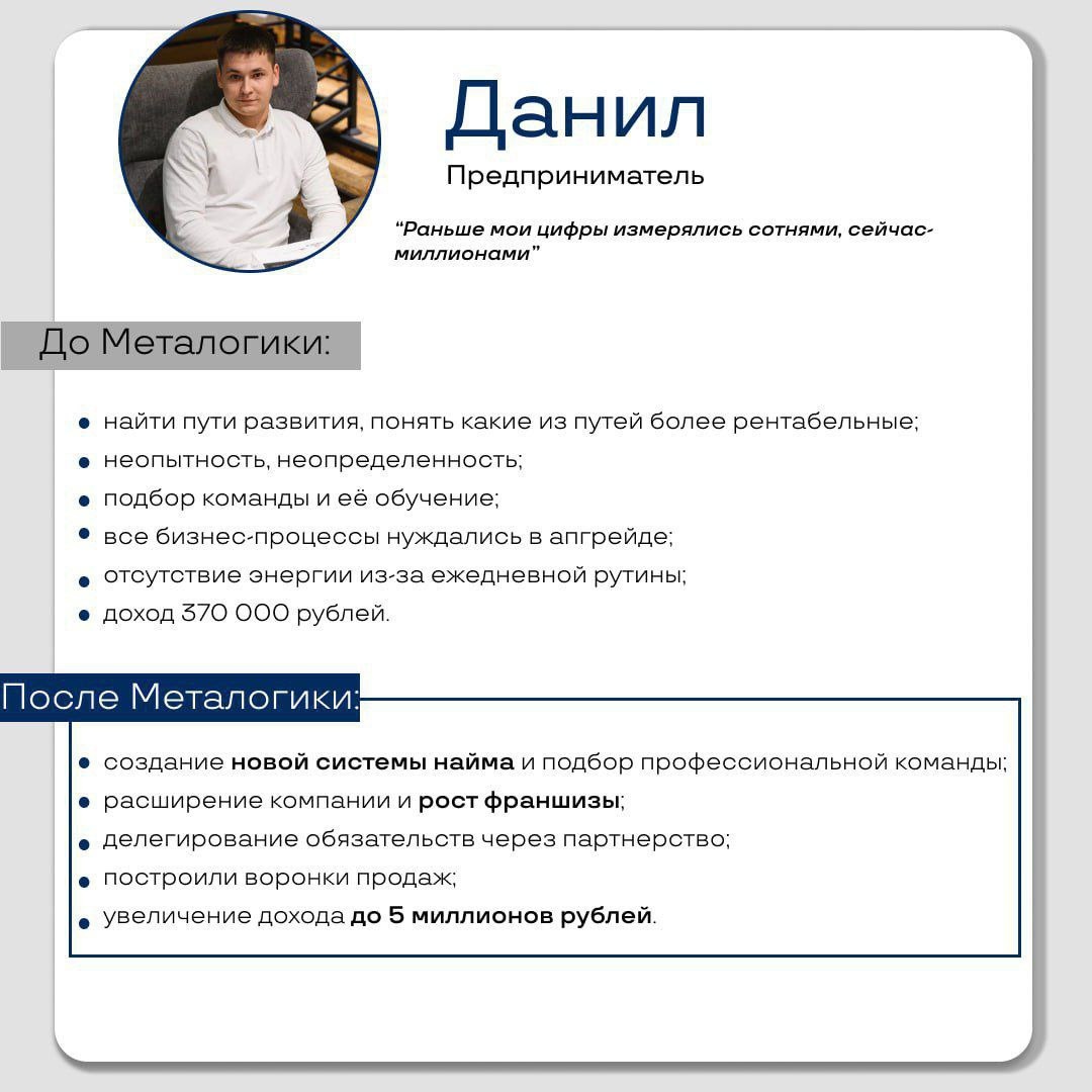 "Основное, что я осознал - для предпринимателя очень важна дисциплина. Обязательно нужно найти себе точки контроля, чтобы кто-то их сверял, ведь раньше некоторые задачи я мог долго откладывать на потом" "В обучении было много взаимодействия, индивидуальный подход, что для меня очень важно" Ссылка на полное интервью: https://youtu.be/C58HTv2CnTc?si=umQEMcMtxzo6dbht