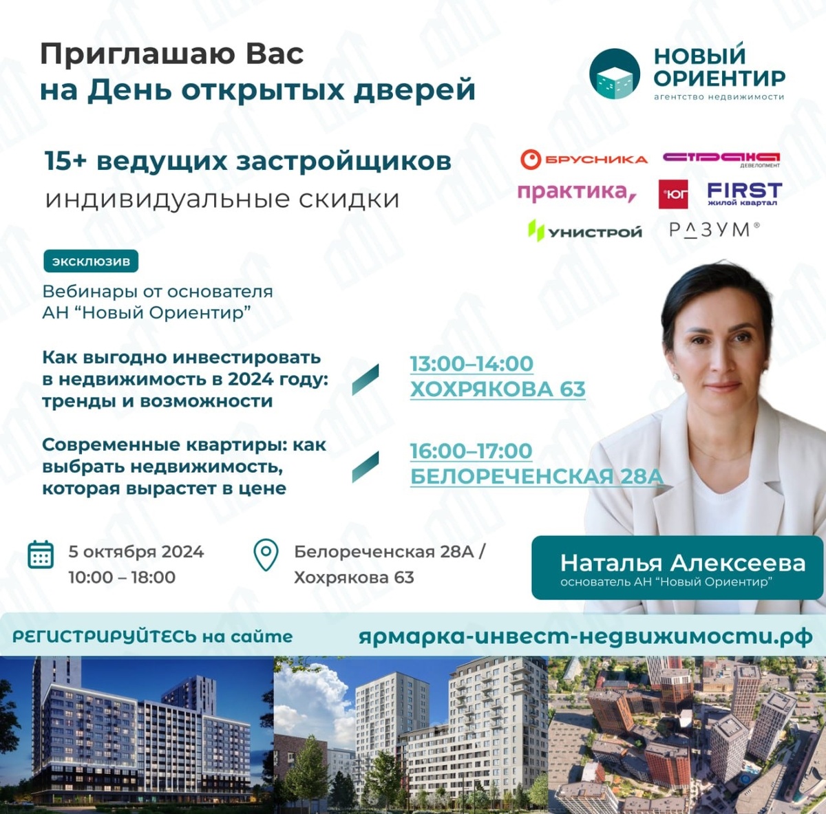 Друзья, у нас отличная новость! 5 октября агентству недвижимости «Новый Ориентир» исполняется 4 года, и мы с радостью приглашаем вас отметить этот особенный день вместе с нами! Это будет не просто праздник, а целый день с выгодными предложениями, полезной информацией и приятными сюрпризами. Мы подготовили насыщенную программу с интересными лекциями от экспертов, где вы узнаете: Кроме того, вас ждут: Мы ждем вас 5 октября с 11:00 до 18:00 на двух удобных площадках: Выбирайте удобное для вас место и приходите на наш праздник! Помимо полезных лекций, вас ждут подарки, угощения и розыгрыши. Каждый гость сможет принять участие в розыгрыше ценных призов, среди которых главный приз — колонка Яндекс! Для наших маленьких гостей будут сладости и весёлые сюрпризы. Мы уверены, что этот день станет не только праздником, но и возможностью получить полезную информацию и отличные предложения по недвижимости. Если вы давно хотели разобраться с вопросами покупки жилья или инвестиций в недвижимость, наш