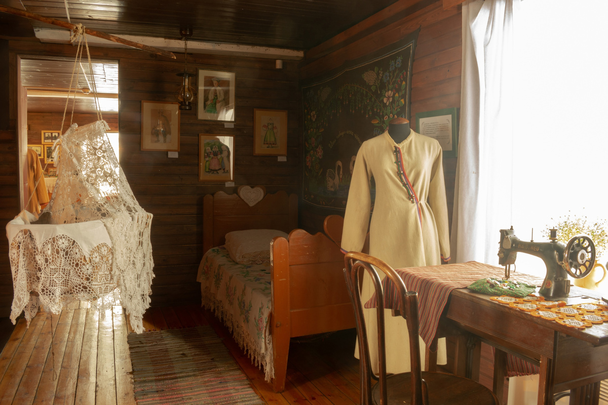 В музее-усадьбе народа сето в деревне Сигово вы можете увидеть предмет, о котором во время экскурсии обязательно расскажет хозяйка усадьбы. А еще с ним связана замечательная примета: если его покачать, – жди пополнения в семье! Как вы наверняка уже догадались, этот предмет – детская люлька. Если в доме жила молодая семья с маленьким ребенком, то непременно была и люлька, которая в традиционном сетоском доме существенно облегчала жизнь и маме, и бабушке. Люлька была устроена так, что позволяла маме справляться одновременно с двумя делами: например, варить суп и качать ребенка. В потолок комнаты (обычно в продольную потолочную балку) вбивалось металлическое кольцо, в которое просовывалась длинная, гибкая и крепкая жердь. Люлька подвешивалась к жерди и была способна довольно сильно колебаться (укачивать ребенка). Вся конструкция могла тянуться на половину избы. Люльки изготавливались, либо из досок, как корыто, либо в виде плетеной корзины. На дно люльки обязательно клали матрас из