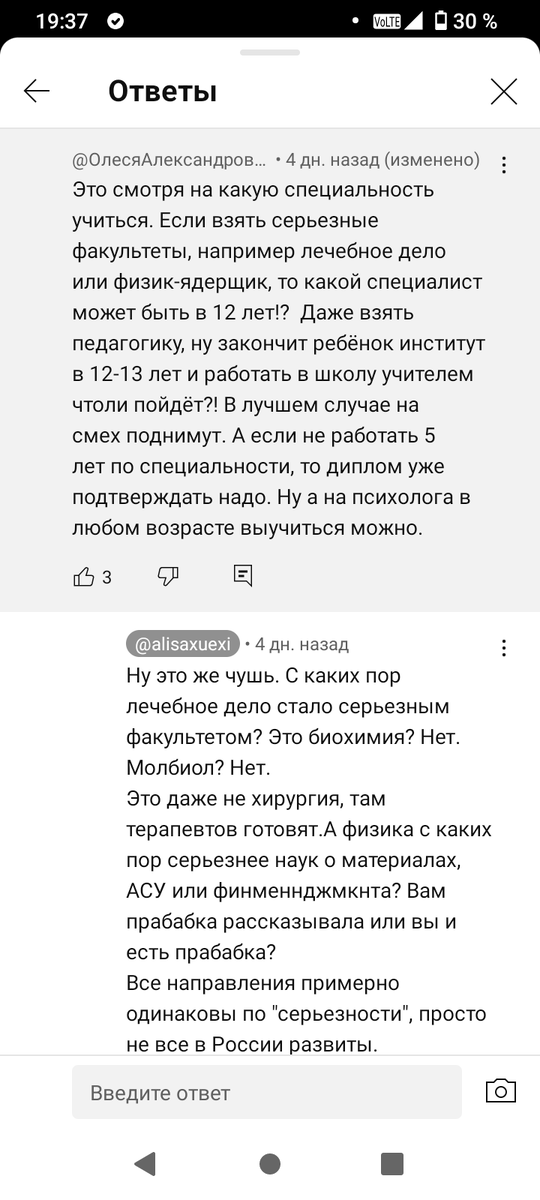 Вот, лечебное дело теперь не серьезная специальность, вы в курсе? И физика ядерщика можно за полгода на курсах отучить. Представляете себе терапевта восьмилетку? А ассистента хирурга восьмилетку? Я могу только пожелать бабеЖо, чтобы он попал в больницу с аппендицитом к хирургу восьмилетнему ребенку. И чтобы его микроволновку сделал двенадцатилетний физик ядерщик. АЭС не надо, там бахнет так бахнет, что всем прилетит. А вот лично этому пусть проектируют его Алисы. И лечат его тоже пусть его же восьмилетние Алисы,которые базово отучились заочно на врачей. Я согласна. Во, конечно не врач, а три совы в плаще. Перегнул что-то. Желаю ему не врачей для лечения.