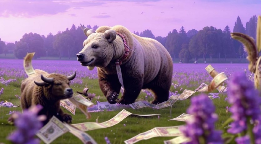 …Я сейчас не о том, что какие-то животные считаются проносящими удачу и деньги, как, например, свинья в Китае. Нет! Я про базу фондового рынка, о которой важно знать, даже если пока вы инвестировать не собираетесь. А вдруг завтра соберетесь? Расскажу про 4 животных поподробнее и еще одно упомяну… Итак, какие животные и каким образом влияют на фондовый рынок, то есть на стоимость акций и на кошельки инвесторов? Это на картинке бычок идет вниз. На самом деле «бычьим» рынком называется рынок растущий, когда акции и облигации и фонды всякие дорожают. Причем здесь бык? А вы видели в кино, например, как бык поднимает кого-то на рога? Он наклоняется голову, подсовывает рога под врага и буквально подкидывает его в воздух. Вот по аналогии считается, что если рынок растущий, значит, туда вышли быки, которые тащут цены вверх, подкидывая их рогами. А медведи со своими жертвами ведут себя совершенно иначе, ну правильно, рогов-то им Бог не дал. Они наваливаются сверху и пытаются давить всем весом с