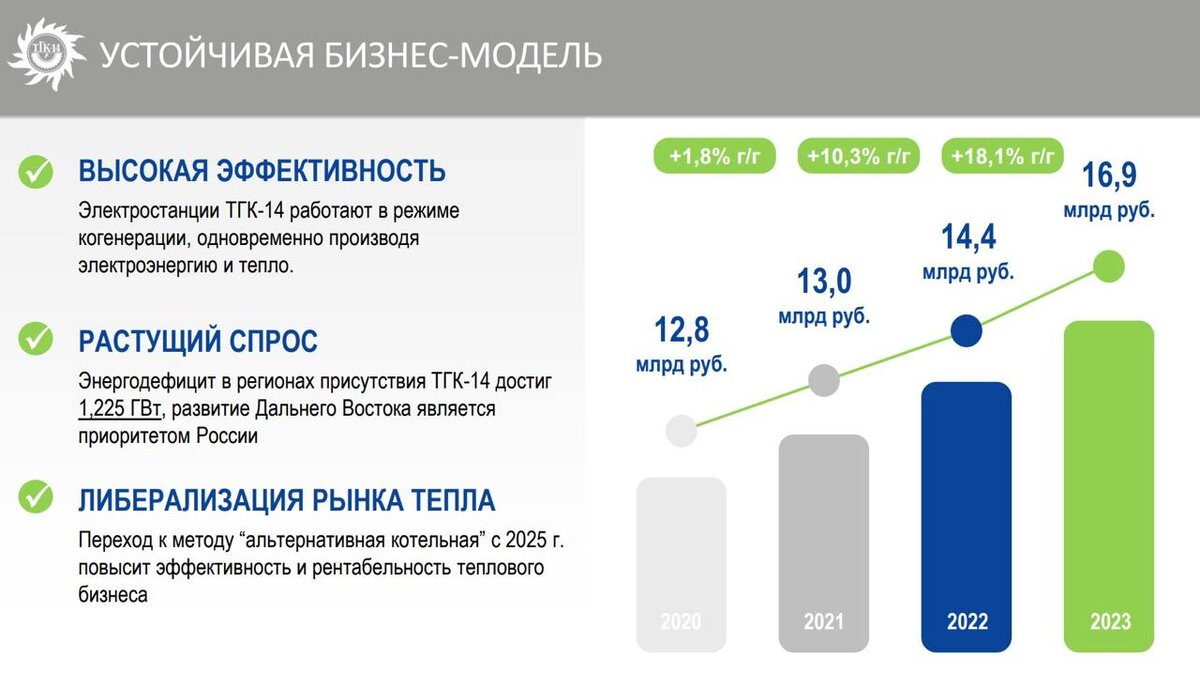 ТГК-14 объявил о старте SPO. Сбор заявок завершится в пятницу, 4 октября, в 18:00 мск, а цена предложения в рамках данного размещения установлена в размере 0,01 руб. за акцию, что предполагает апсайд 13,4% к цене закрытия торгов 1 октября. В этой статье я хочу провести фундаментальный анализ компании для выявления основных драйверов роста бизнеса. Компания является ведущим производителем и поставщиком электрической и тепловой энергии в Забайкальском крае и Республике Бурятия. В последние годы потребление энергоресурсов на Дальнем Востоке увеличивается стремительными темпами, значительно опережая рост потребления в других регионах России. Число подключений к объектам инфраструктуры неуклонно возрастает, особенно в сфере жилищного строительства. Кроме того, высокий спрос отмечается со стороны промышленного сектора. Цены на электрическую и тепловую энергию растут двузначными темпами, что вкупе с эффективным управлением затратами позволяет компании работать с весьма неплохой маржинальность
