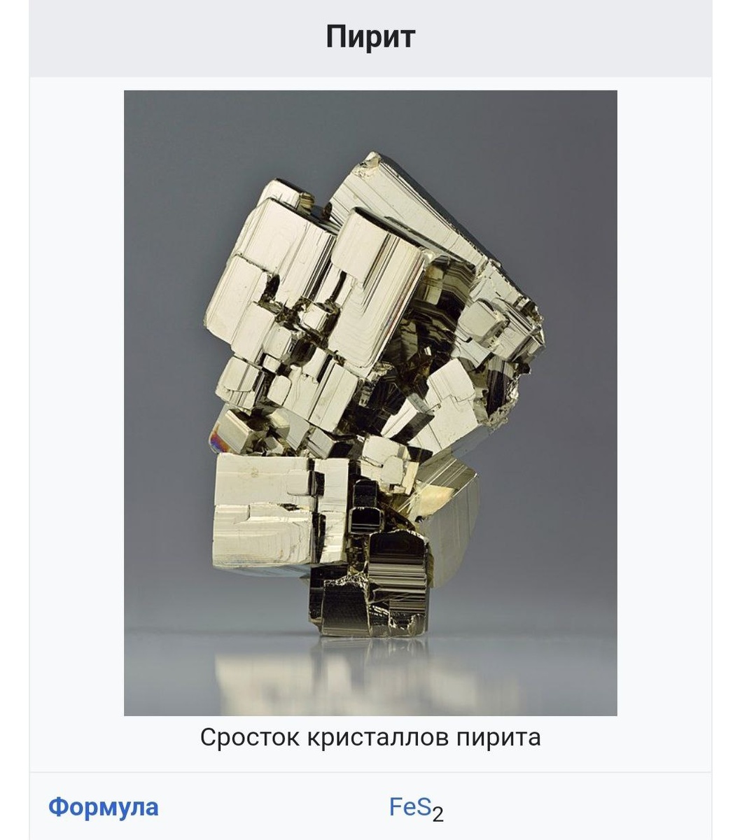 Пирит (греч. πυρίτης λίθος, буквально «камень, высекающий огонь»), серный колчедан, железный колчедан — минерал, дисульфид железа химического состава FeS2 (46,6 % Fe, 53,4 % S). Нередки примеси Со, Ni, As, Cu, Au, Se и др.