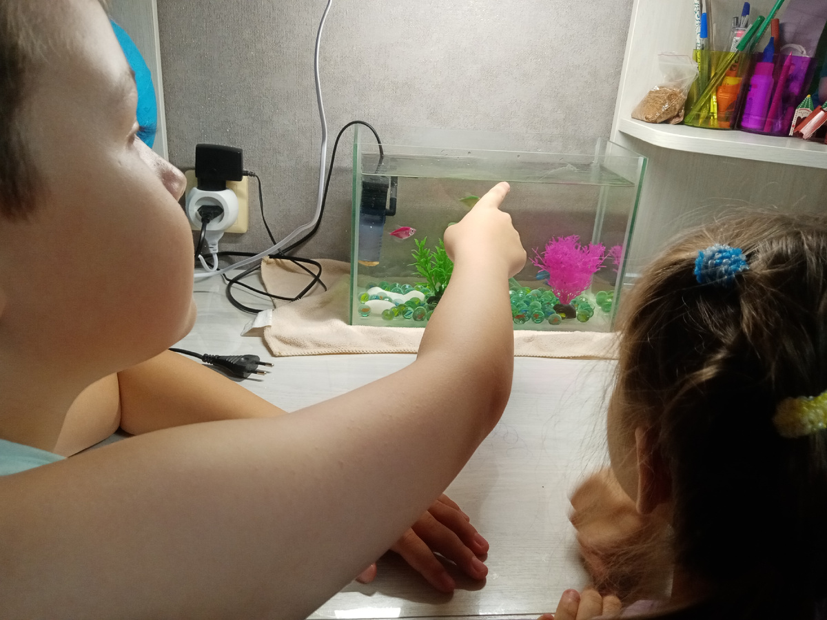 Сын давно просил себе рыбку. Денег лишних в семье нет. Поэтому откладывалось это дело. А сегодня на авито увидела объявление, что продают аквариум небольшой недорого и около нас. Предложила бартер на яйца деревенские. И согласились! Сходили забрали с сыном. Дети счастливы! Да и мы взрослые тоже. Вообще не отходят от рыбок. Будем думать над оформлением. Что то свое внести. Крышку надо купить. С ней мне кажется посимпатичнее будет.