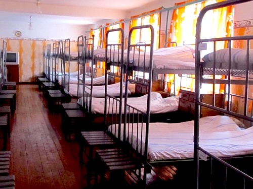 Заходя в сам барак попадаешь в длинный коридор (продол), налево в конце коридора двери, там уже 2 огромных помещения со двуярусными шконарями, а справа кухня, ленка, подсобка с камерами хранения и туалеты с душевой.