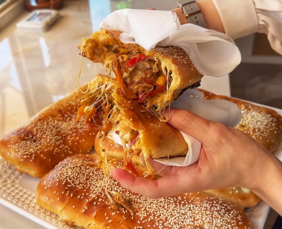 Добавляем яйца и масло, потом постепенно вмешиваем муку с разрыхлителем и солью. В итоге ты получишь мягкое, эластичное тесто. Пусть оно поднимется — оставь его на час в тёплом месте. Вот увидишь, оно станет гладким и пушистым. Это такой кайф — работать с мягким тестом! 😍