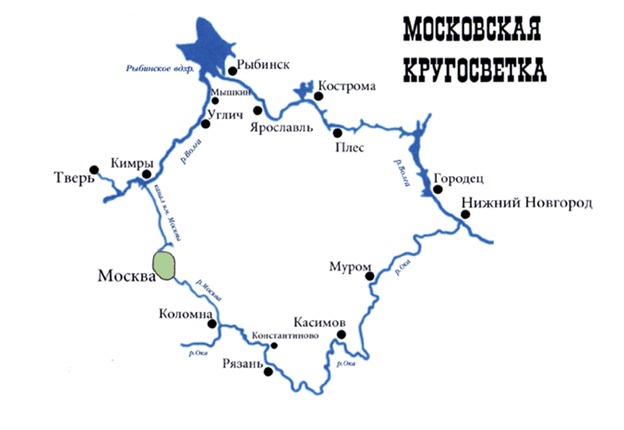 Московская кругосветка неофициально получило название «Речное золотое кольцо». Потому что совпадает частично с «Золотым кольцом» России. Круиз на теплоходе со звучным названием «Московская кругосветка» берет свое начало на в Москве, а ее протяженность больше 1800 километров. Маршрут проходит сразу по нескольким рекам – это единственный в мире кольцевой речной маршрут для туристических прогулок. Круиз начинается от Южного речного вокзала Москвы, идет по Москве-реке и Оке до Нижнего Новгорода, затем вверх по Волге до Иваньковского водохранилища и по каналу имени Москвы - к Северному речному вокзалу столицы. Сесть на лайнеры можно в Нижнем Новгороде, Москве, Ярославле, Костроме и Рязани. «Московская кругосветка» — знаменитый советский речной кольцевой маршрут. Он единственный соединял Северный и Южный речные вокзалы. Путешествие на теплоходе из Москвы начиналось на Северном речном вокзале. Проходя по каналу имени Москвы, верхней Волге, Оке и Москве-реке, суда миновали Южный речной вокз
