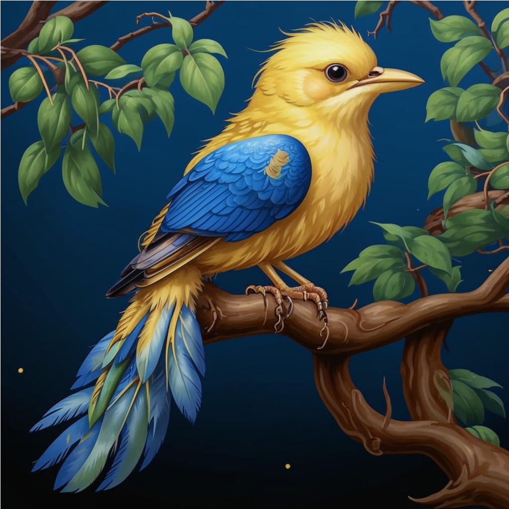 Захотелось вдруг королеве поймать её. Подкралась она, схватила птичку, но не поймала, только синее перо выдернула. А птичка подлетела к королеве, села к ней на плечо и говорит;