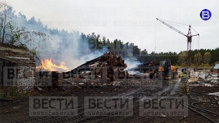 На пилораме под Новосибирском вспыхнули штабели из бревен и опилки