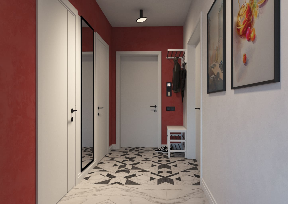 Для молодого человека, ценящего красоту и порядок, прихожая была спроектирована с акцентом на визуальное увеличение пространства и функциональность.