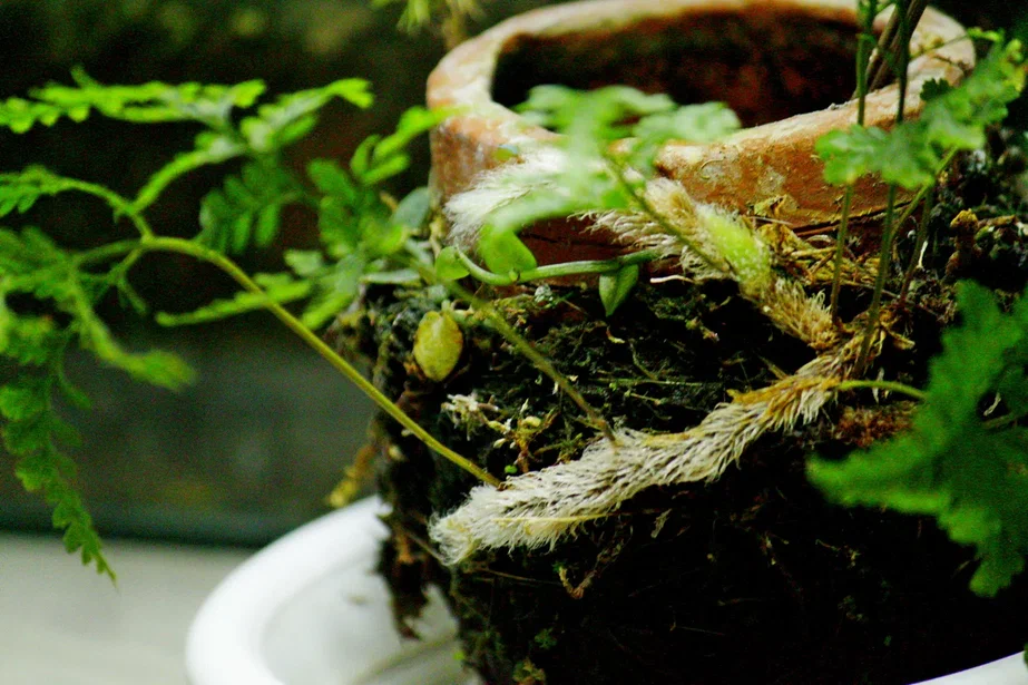 Вы знаете, я так рада за тех читателей, которые пришли сейчас. На многие мои опыты они могут посмотреть не в процессе, а на результате. Ну классно же? Увидел результат, пошел и посмотрел процесс и решил, надо оно мне или нет. Но вам, мои старые постоянные читатели, я безмерна благодарна за поддержу, без вас этот опыт не имел бы такое количество фотографий, а без поддержки и не было бы ничего. Первое. Мне надоело выращивать свои растения в горшочках, решила пробовать флорариумы, фитопот, тотемы, блоки, содержание без грунта. Так родилась эта посадка достаточно капризного для моего дома папора Даваллии: керамическая кружка, чуть мха и лески и вуаля Вот статья за весну 22 года Даваллия упорно то гнила, то сохла в моем уходе. Любви я причиняла ей многовато, вот и результат. А тут, на кружке, с небольшим кусочком мха и не зальешь и засушить сложнее, ведь теперь растение на виду, а не где-то в толпе. Барабанная дробь за несколько лет выросло вот это Несколько раз отламывала корневища, чтобы