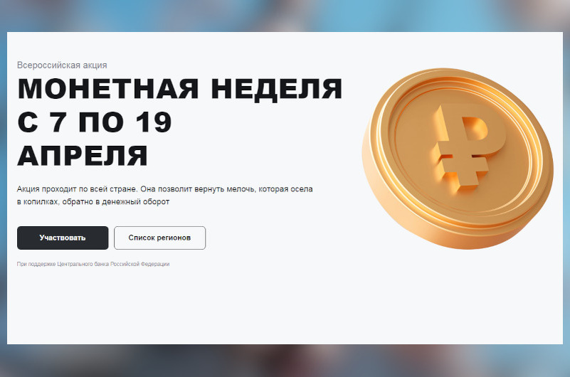 7 апреля в России стартовала «Монетная неделя». Во время этой акции, которая продлится до 19 апреля, можно будет обменять монеты на банкноты без комиссии. Также есть возможность зачислить сумму на банковский счет. В Волгоградской области в акции традиционно примут участие отделения банков. Как следует из списка на официальном сайте монетнаянеделя.рф, металлические деньги примут только в банках Волгограда. На этот раз Волжского и Камышина в перечне нет. Полный список банков-участников и адреса отделений можно найти на официальном сайте монетнаянеделя.рф.