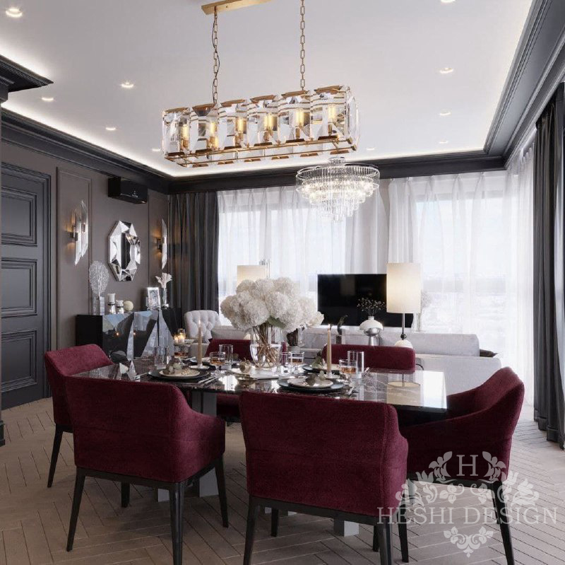 Шикарное сочетание темно шоколадного и насыщенного бордового цвета 🔥 Хрустальные люстры добавляют аристократические нотки https://heshi.ru/authornadzor #дизайн #идеидизайна #дизайндома