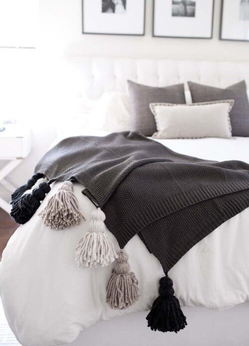 Вязаные пледы с кистями и помпонами Идеи для вдохновения