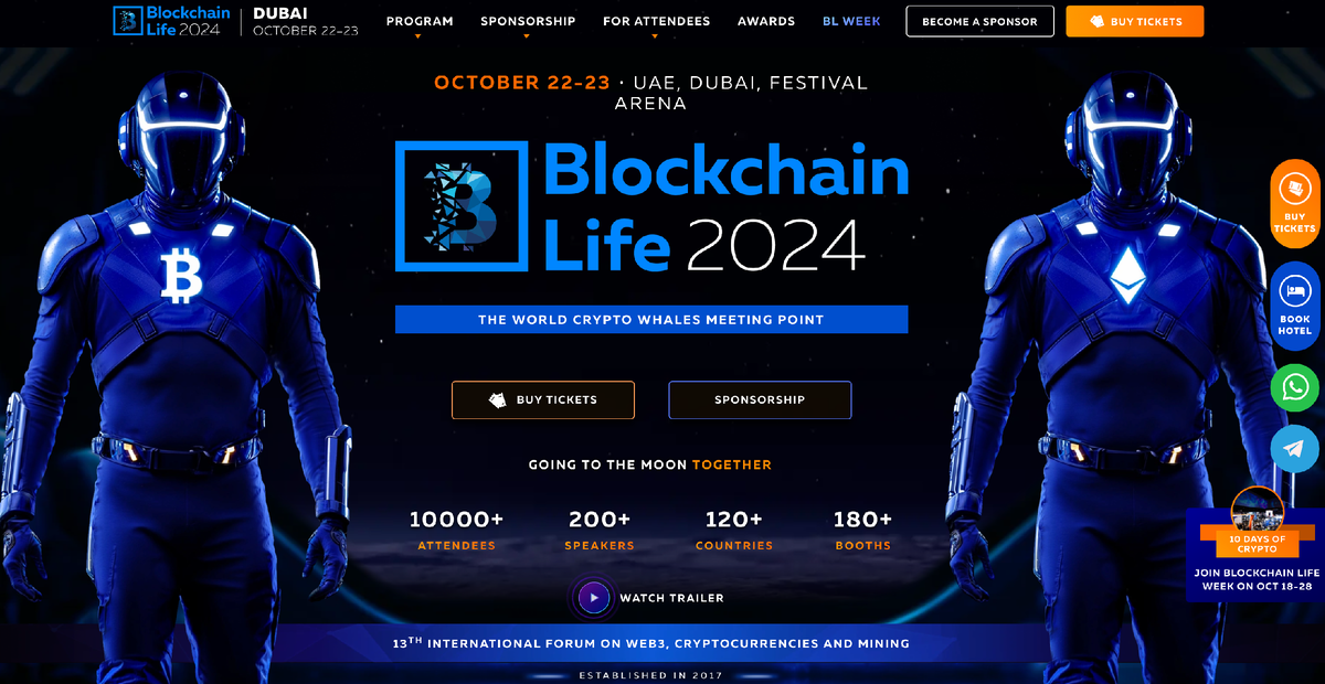 Легендарный Blockchain Life 2024 пройдет 22-23 октября 2024 года в Дубае. Дубай приобрел репутацию глобального криптоцентра, форум станет центральным событием этого года. Поскольку впереди все еще долгожданный пик роста крипторынка, форум предоставляет участникам отличную возможность максимизировать свои доходы. Ожидается, что на форуме соберутся более 10 000 человек из 120 стран, чтобы получить ценные знания, наладить новые связи и изучить потенциальные инвестиционные возможности. На двухдневном мероприятии примут участие отраслевые эксперты, лидеры мнений и новаторы, которые поделятся своими идеями и стратегиями на быстрорастущем рынке. В дополнение к проницательным панельным дискуссиям, на Blockchain Life 2024 будет представлена инновационная выставочная площадка, где ведущие отраслевые компании продемонстрируют свои новейшие продукты, услуги и технологии. На форуме также будет участвовать и иметь свой стенд компания GENESIS. В последний день форума CEO компании GENESIS Иван Петров